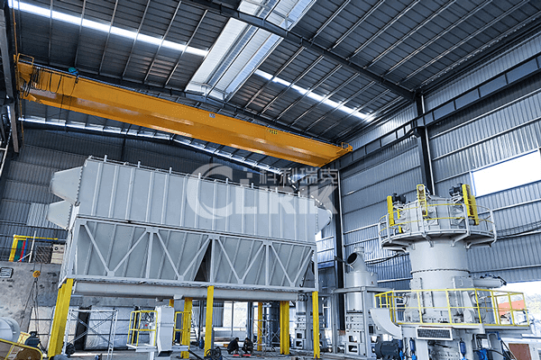 CLUM 系列超細(xì)立式磨粉機(jī)主要由電動(dòng)機(jī)、減速機(jī)、磨輪裝置、碾盤裝置、加壓裝置、選粉機(jī)、進(jìn)料裝置、油站、主機(jī)、電控系統(tǒng)等部分組成。